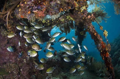 As you can imagine, after all these years spent at the bottom of the sea, this shipwreck has been colonized with abundant marine life. The whole Japanese wreck is now covered of colorful corals and became the home for tiny critters. You will be able to see some large Gorgonian fans, sponges, hard and soft corals and other rare species such as Leaf Scorpion fishes, Ghost Pipefishes and some smaller fishes…